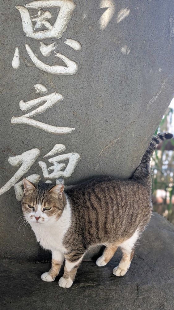 マルちゃんはいつも駐車場近くの石碑の辺りにいます🐱