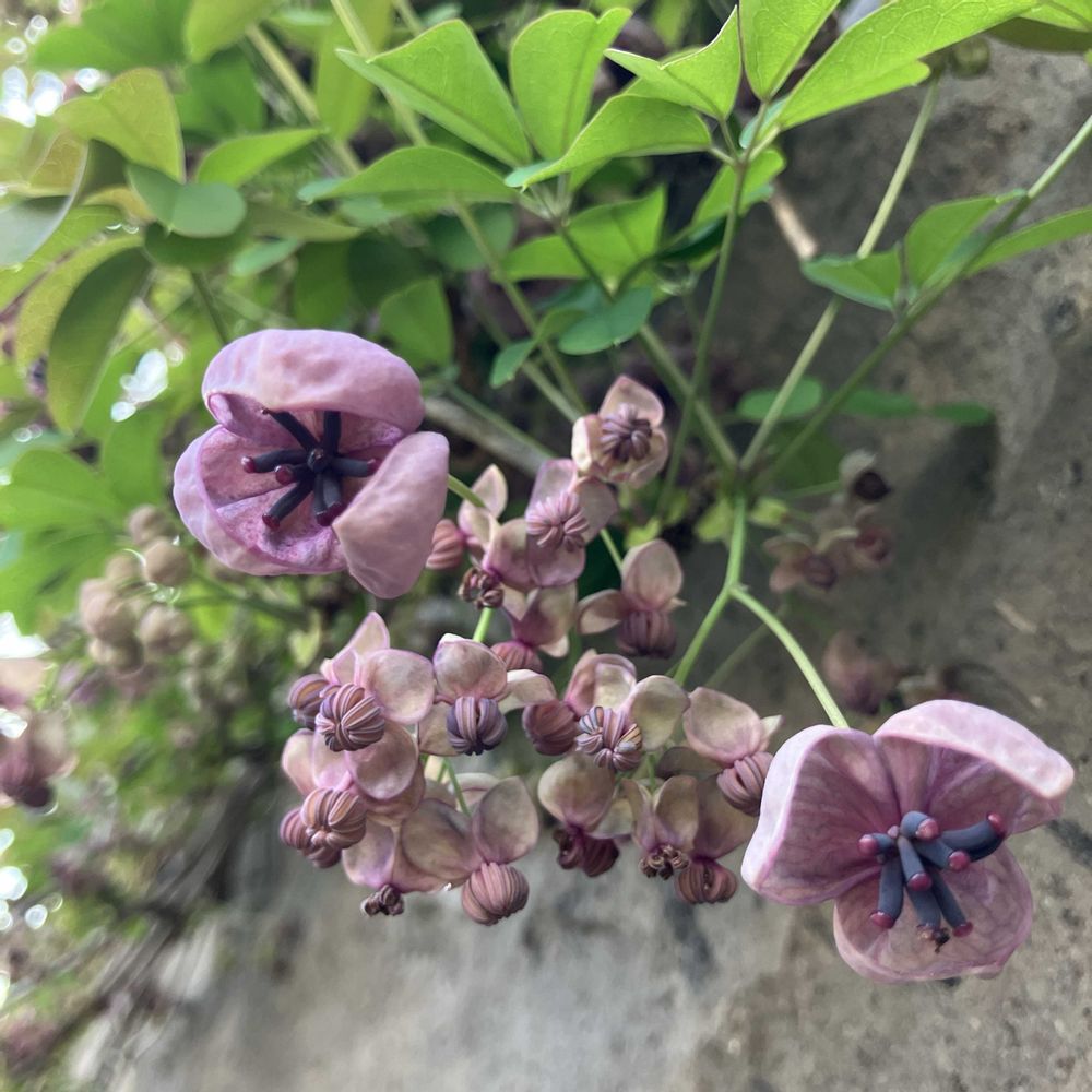 斑入りのアケビの葉っぱの枚数で、花が違うようですね😊
