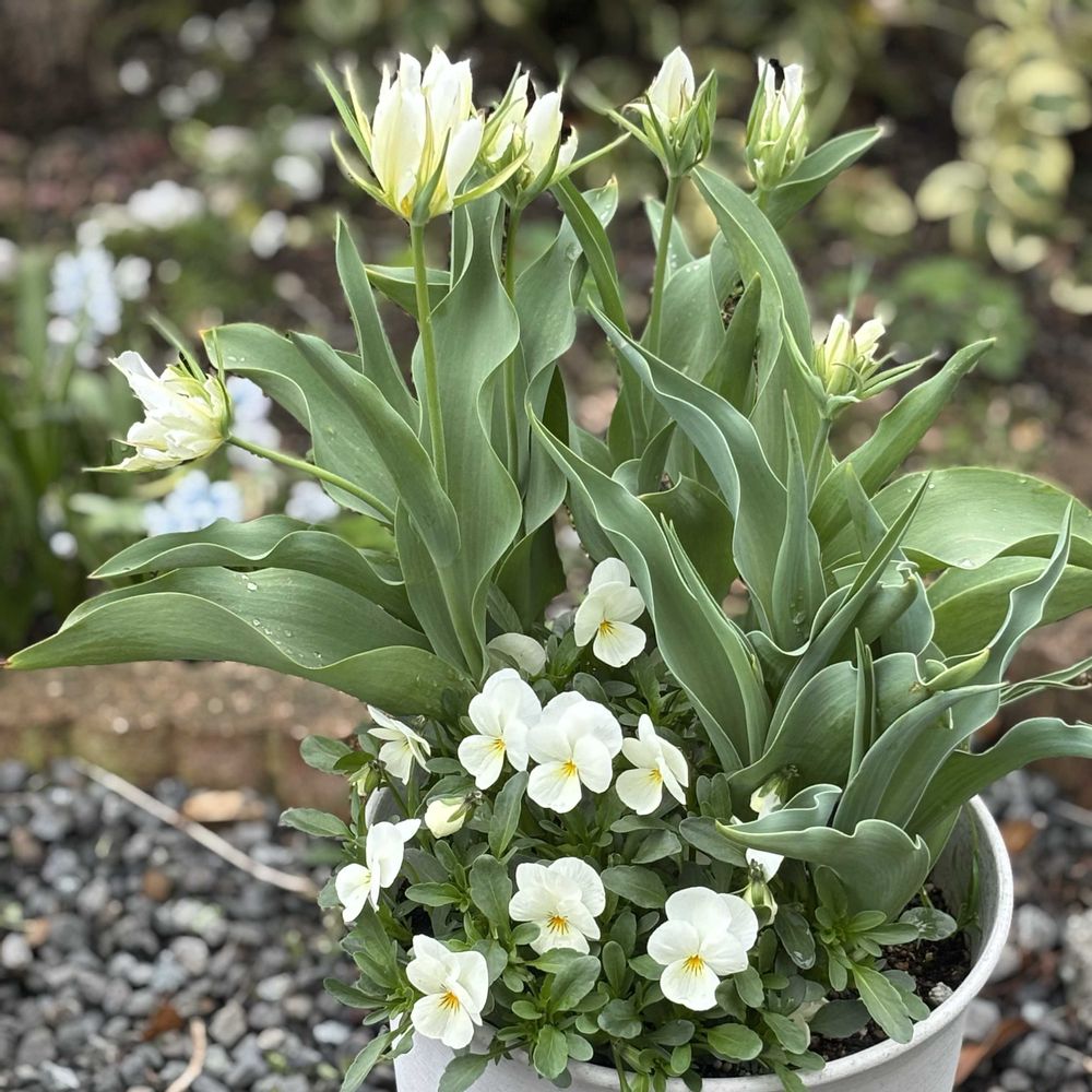 チューリップ ホワイトバレー,ビオラみるくももか,花のある暮らしの投稿画像