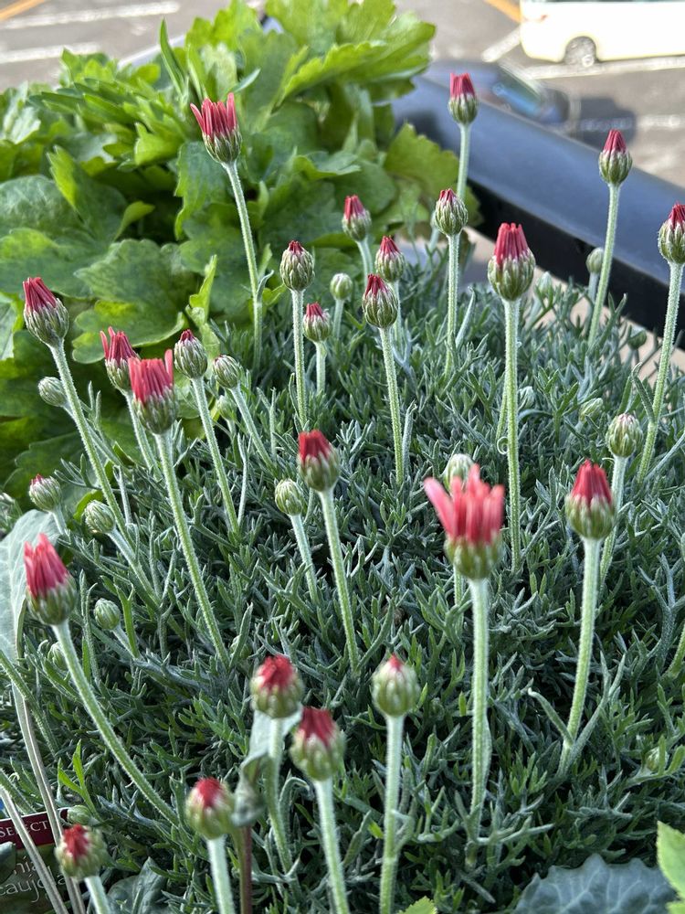 ここ数日の暖かさにローダンセマムの蕾が開いてきました💕