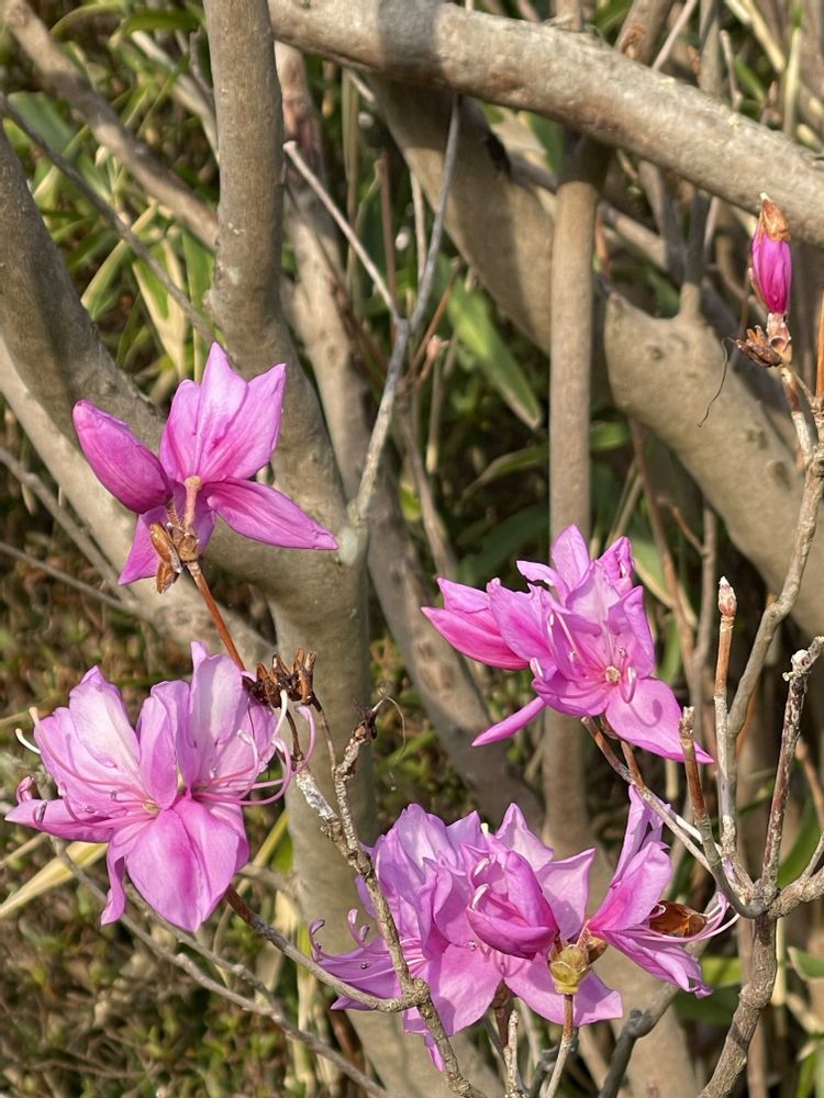 庭のミツバツツジが、やっと咲き始めました。 満開になるのが楽しみです😊。