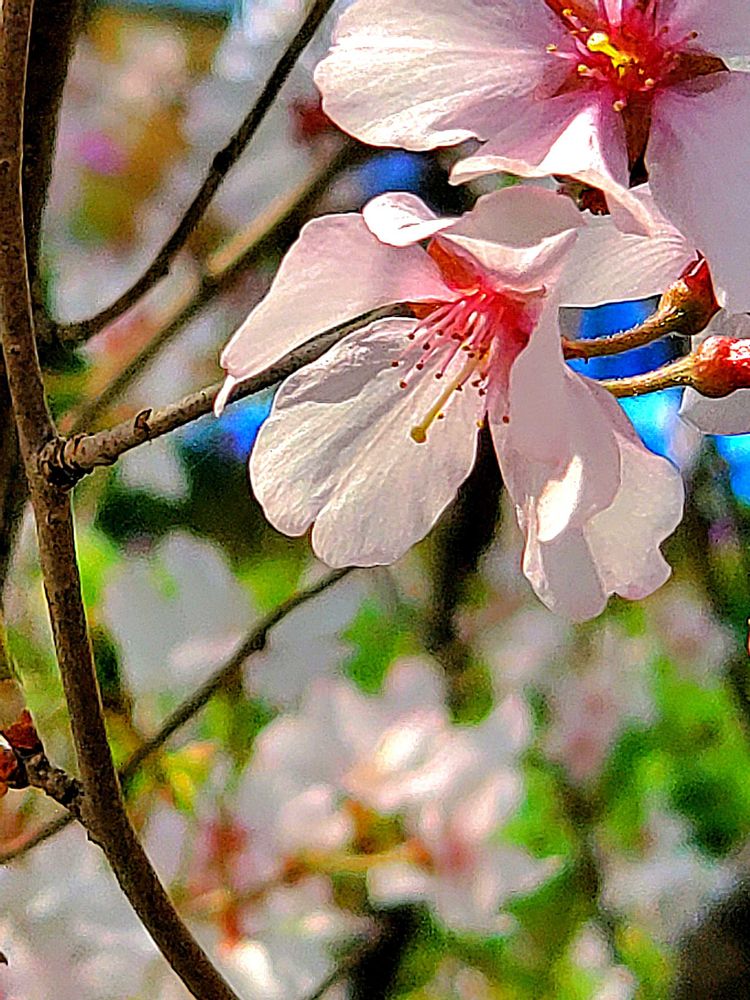 1枚目サクラ、2枚目ロドレイア、3枚目オステオスペルマム、4枚目クリスマスローズ、5枚目ムラサキカタバミです😁