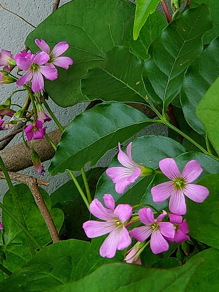 ムラサキカタバミと良く似たお花にイモカタバミがありますが、見分け方は、中心部が薄い緑色がムラサキカタバミ、濃いピンクがイモカタバミですね😁