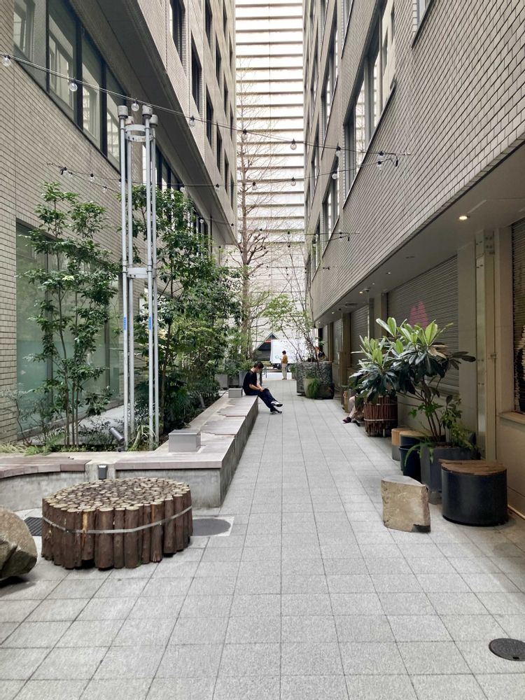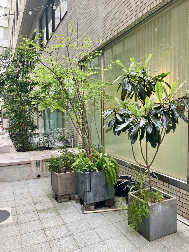 高層ビル街化し続けている丸の内界隈では、館内は勿論のこと、ビルとビルの隙間も公開緑地として供している。