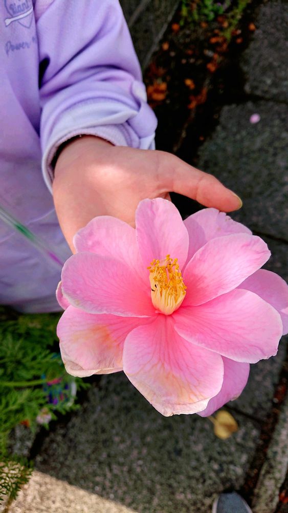 椿は落ちたばかりだったのか、まだまだ綺麗だったので、水に浮かべたら喜んでくれました。