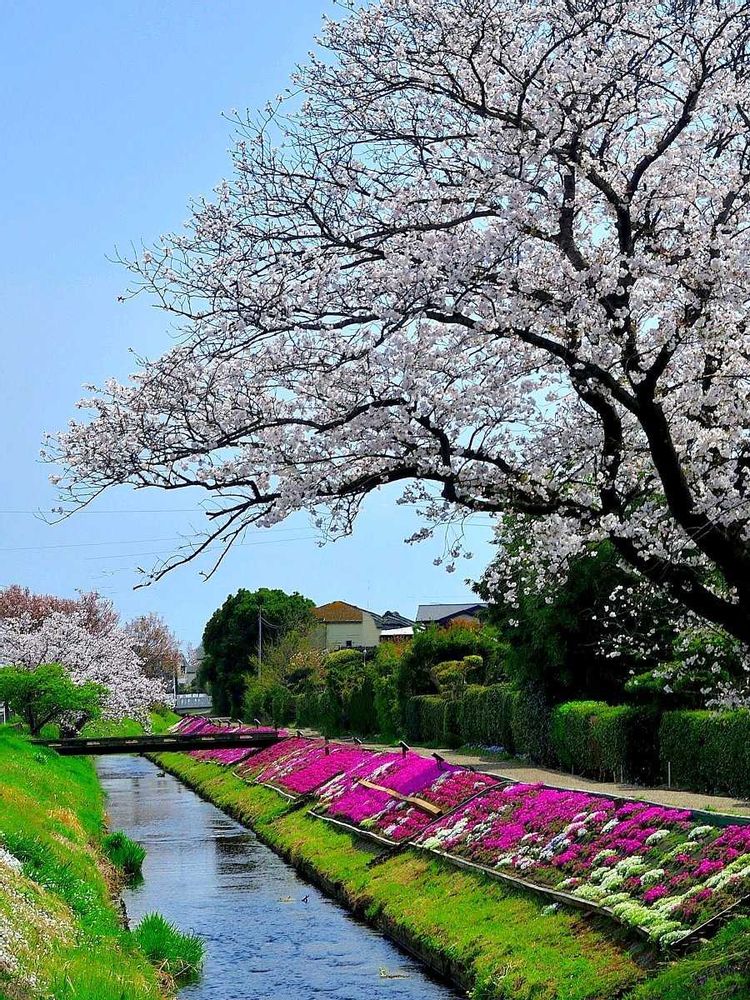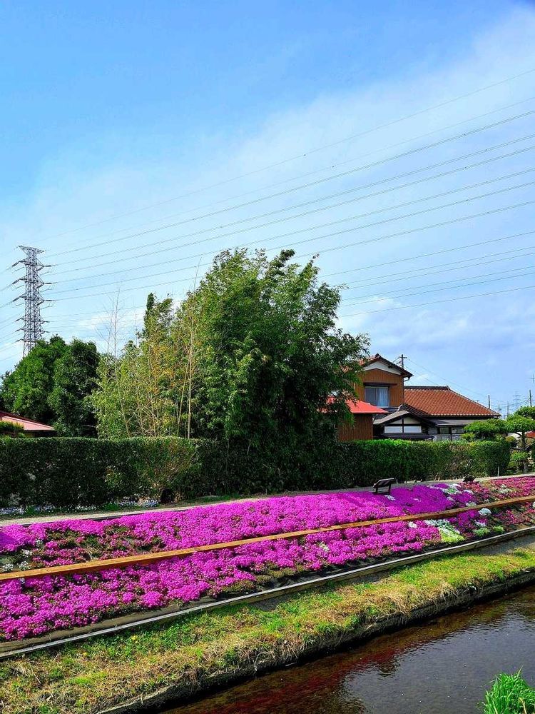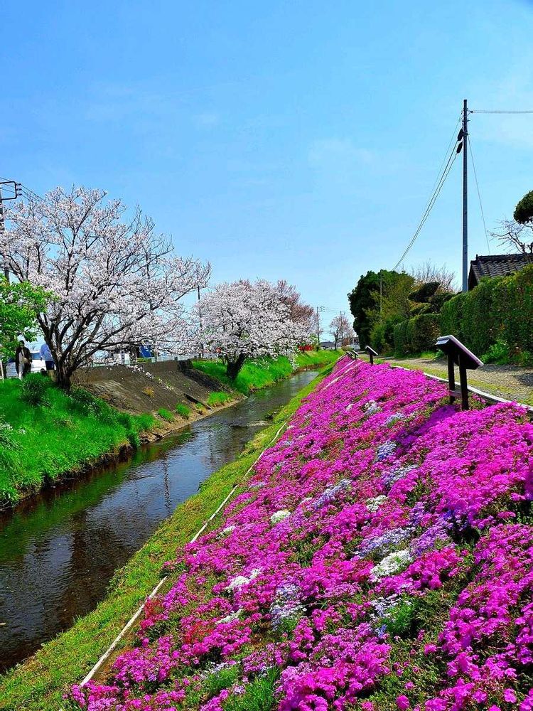 伊勢原市 渋田川沿いの「芝桜」