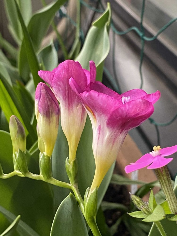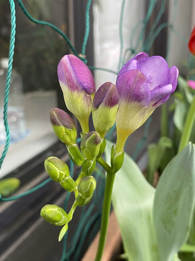 ベランダではチューリップに代わってフリージアがもうすぐ咲きます💜🩷🎶