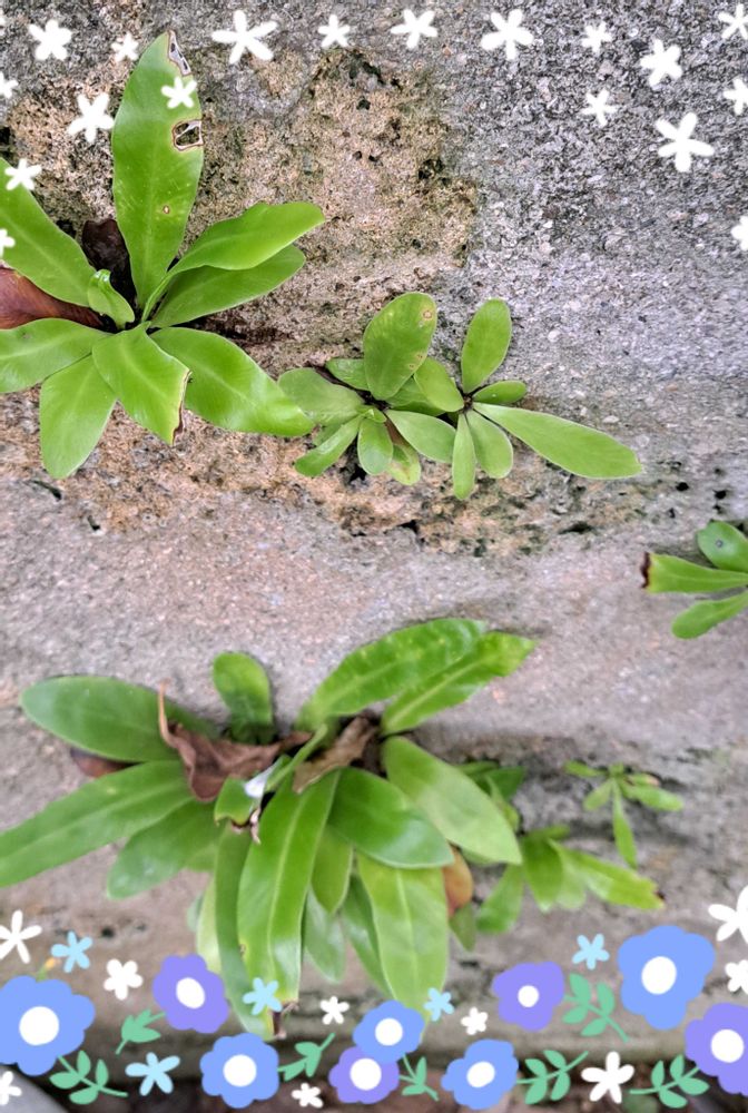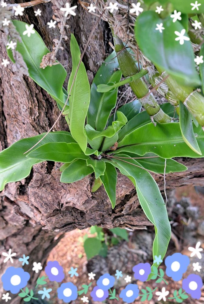 小さな庭の塀や松の木や石に着生しています。🌿🌿🌿