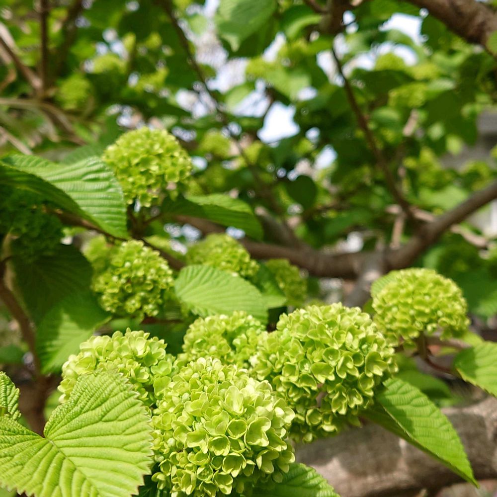 グリーンから真っ白な大きなボールに オオデマリ大好きです😆