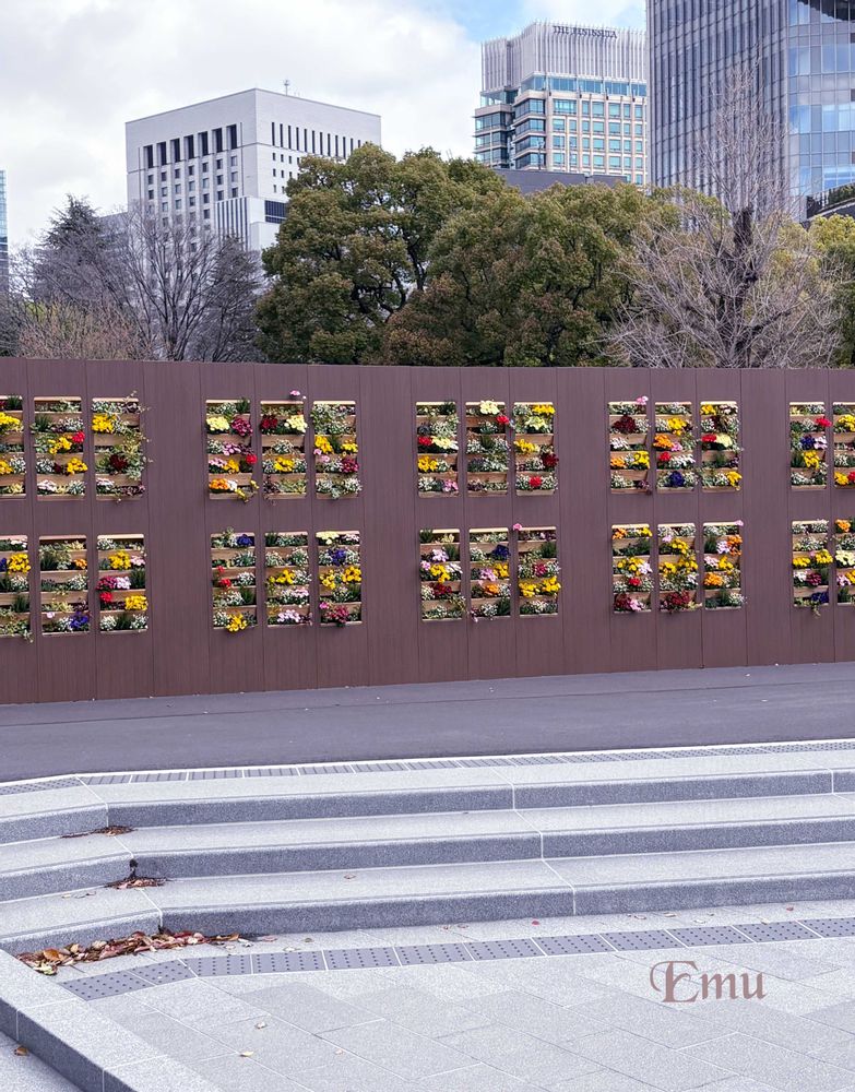 工事中エリアを囲む壁にお花が飾られていました🚧🌼