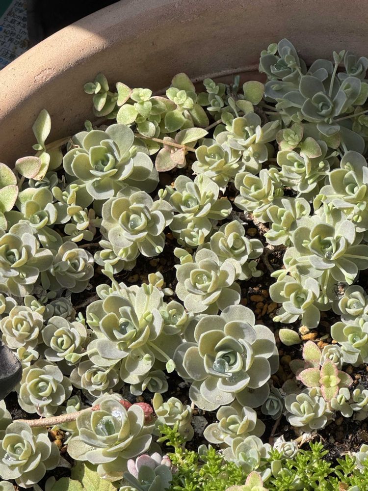 まるでお花畑のように思いっきり葉を広げた子持ちれんげ🥰🥰植え替えしないと窮屈そうだね😅😅