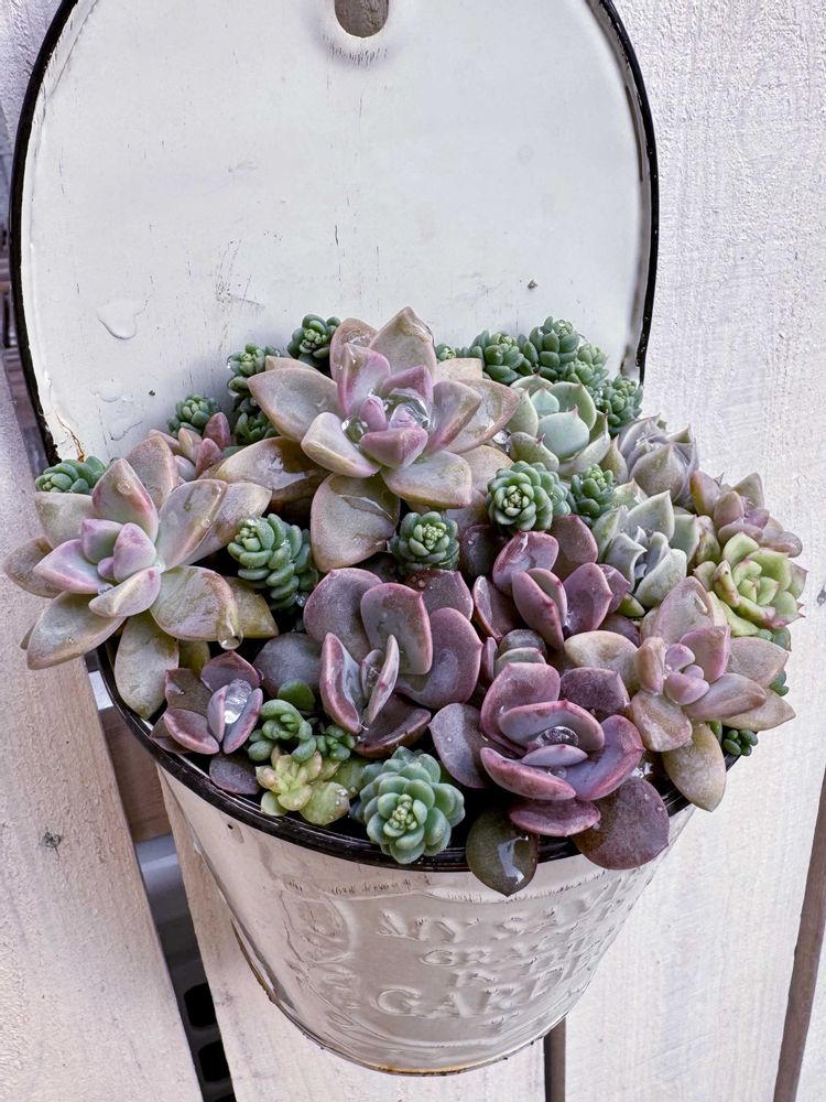 大きくなってきた葉挿したちを集めて寄せ植えを作りました🌸桜牡丹 ダスティローズ🌹