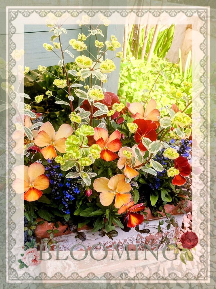 寄せ植えの脇役リーフからもお花が咲いたりして賑やかです🌿🙌✨新芽の美しい色や鉢から溢れんばかりの勢いに春を感じます🥳