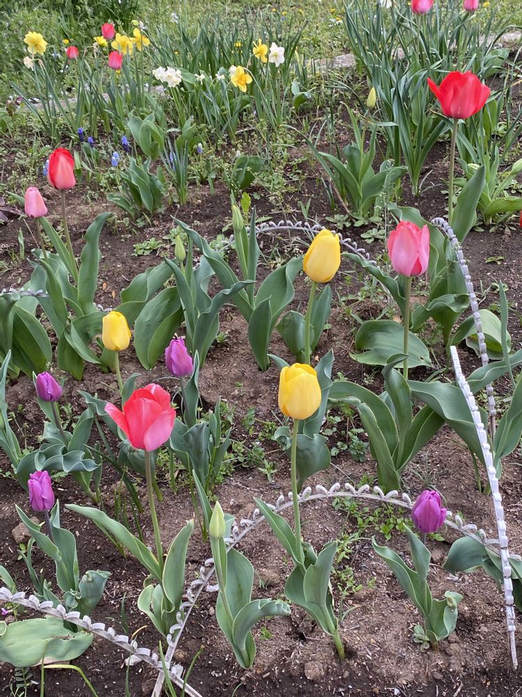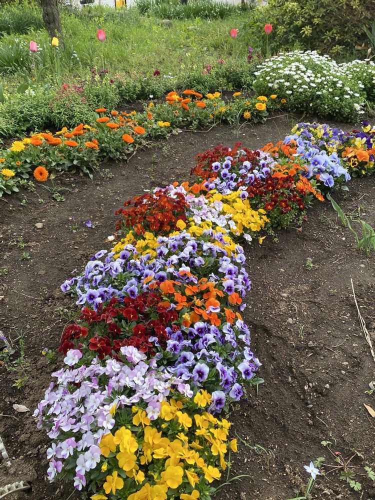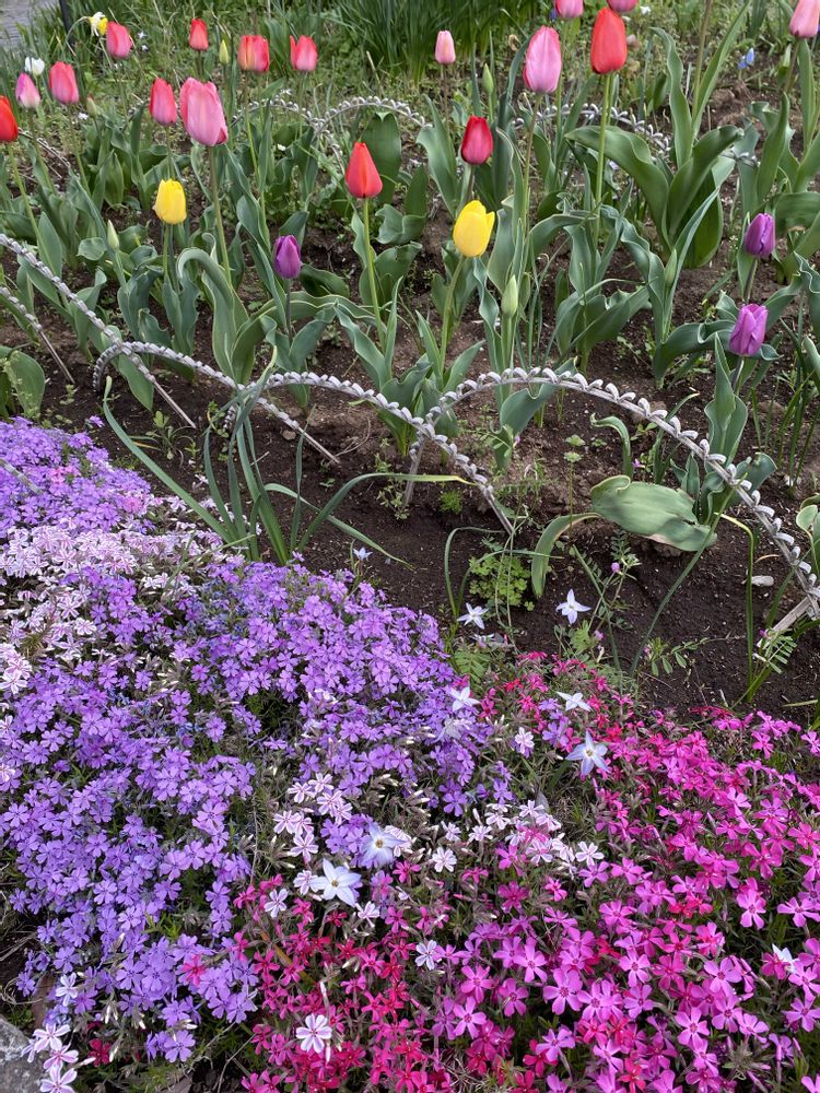 花壇にチューリップ🌷🌷が咲き揃い新年度を応援しています♪