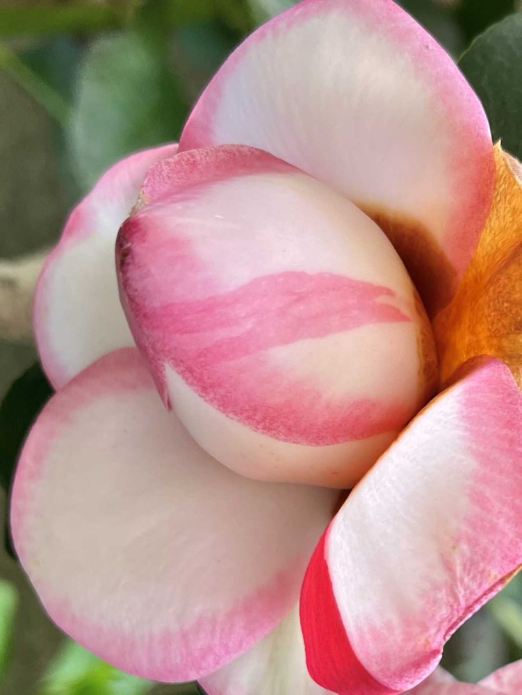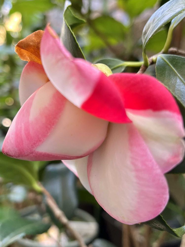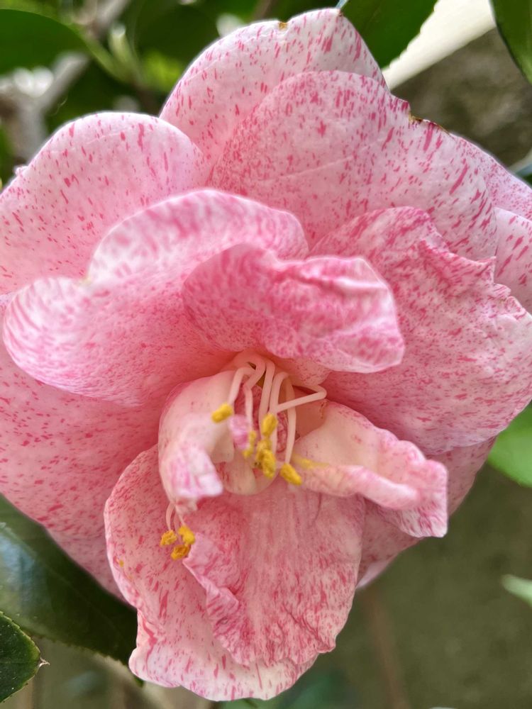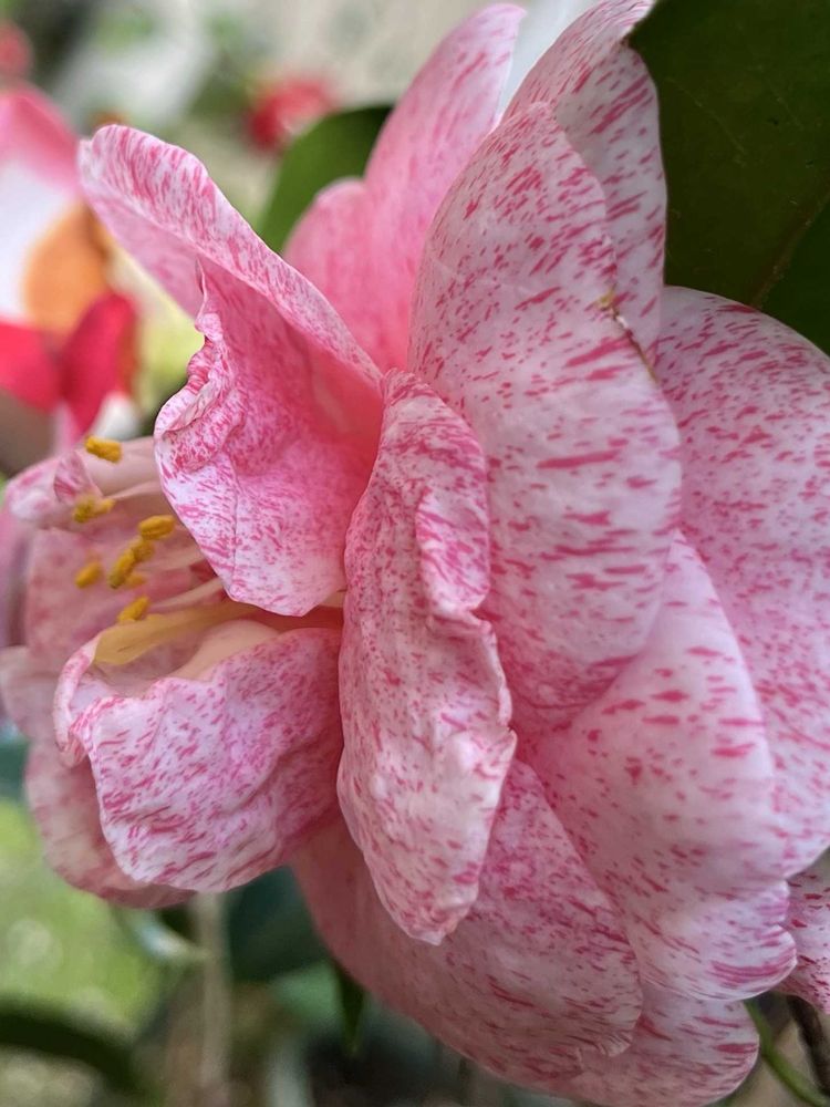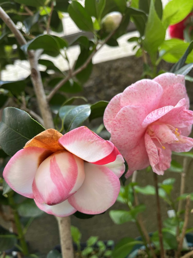 椿・越の麗人🤍🩷以前にも全体が吹き掛け絞りの模様になりかけたことがありましたが、今回はカンペキに✨咲き分けるようになってきたのかな❓ということは…キミはもう大人になったんだねー🌟<( ¯﹀¯ )>エヘン💨
