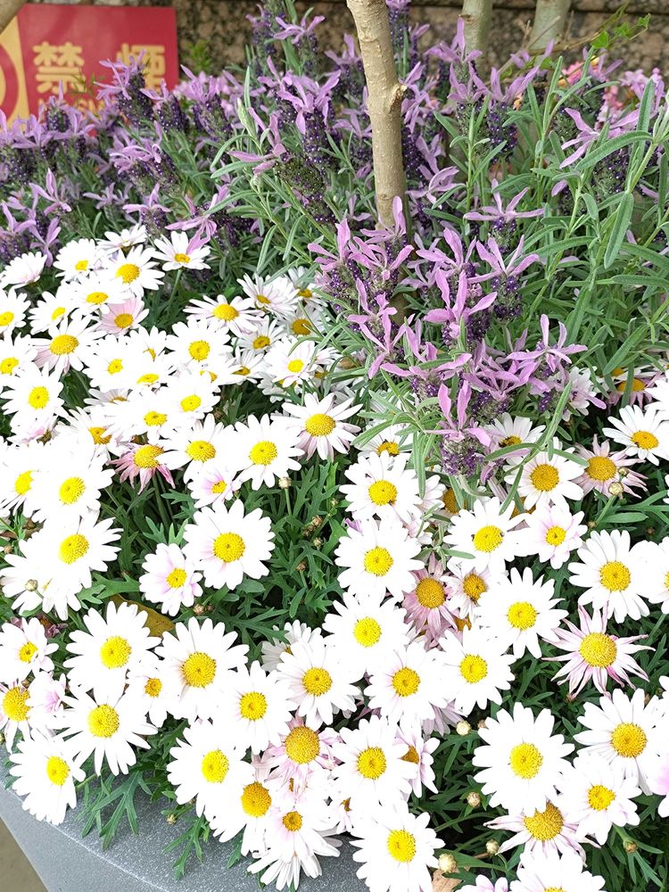 ❸商業施設の入り口の寄せ植えの一つマーガレット