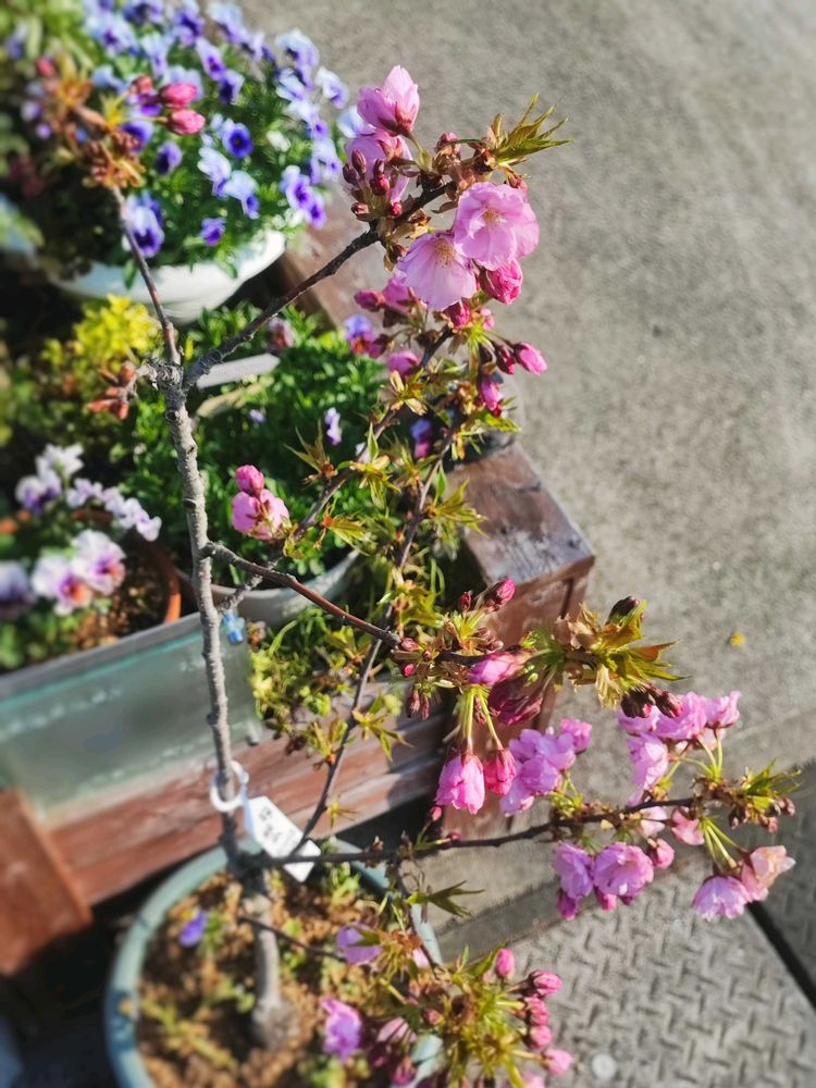 旭山桜も開花しました。今年はたくさん咲きました~。他の桜は咲かなかったので、うちでは唯一今年咲いた桜です。一才桜として小さい状態から育てて、だいぶ大きくなりました。
