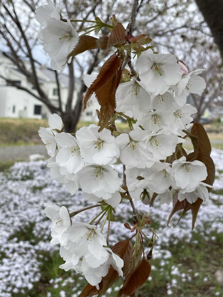 近くの公園前のヤマザクラが満開です🌸🍃
