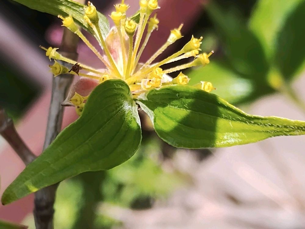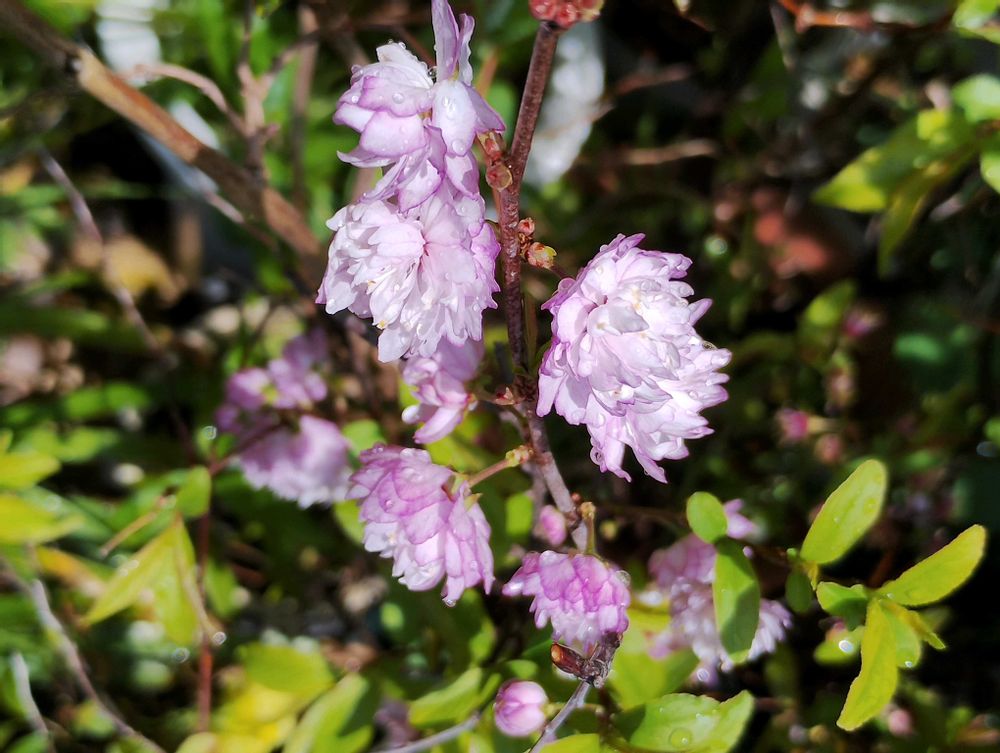 庭桜八重有ったんやベランダで咲いてる👌ニワウメも花散り小さな梅沢山付くよ、サンシュも花終わり実が付いて欲しい