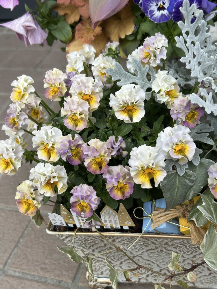 ①フリンジビオラ帰蝶さんがモリモリで②シロタエギクさんが押され気味😆