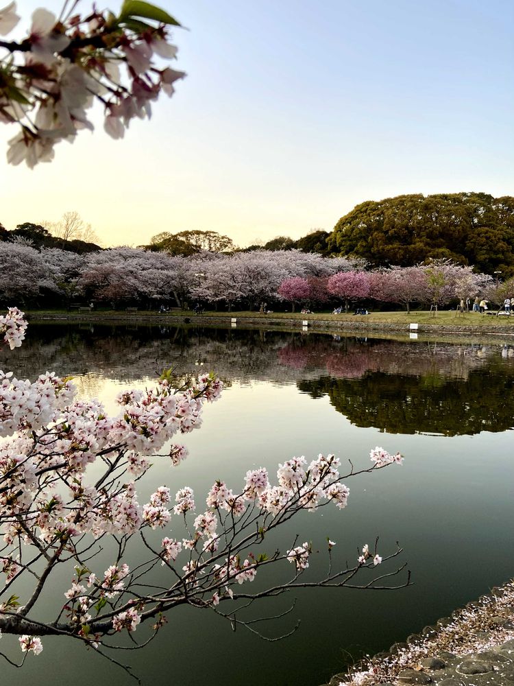 夕暮れ時の近くの公園の桜🌸🌸🌸🌸🌸風情がありますね💓💖