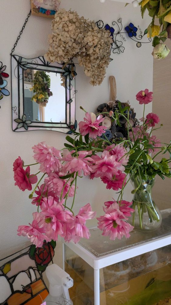 花付きで買ったラックスヘラが徒長し過ぎたのでカットして飾りました🪷⟡.·