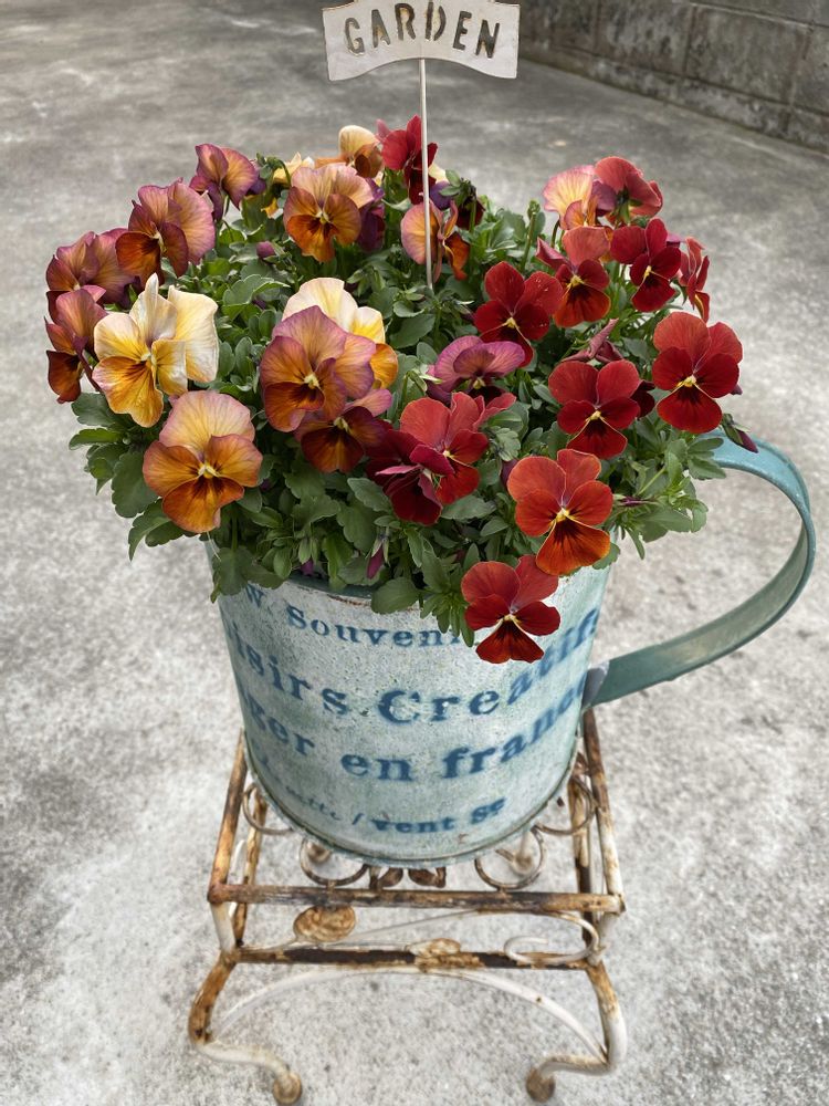 地植えが出来ないもので鉢選びも楽しみですが、家中で使ってたブリキ缶をお庭で使用し重い鉢は少し断捨離しました。