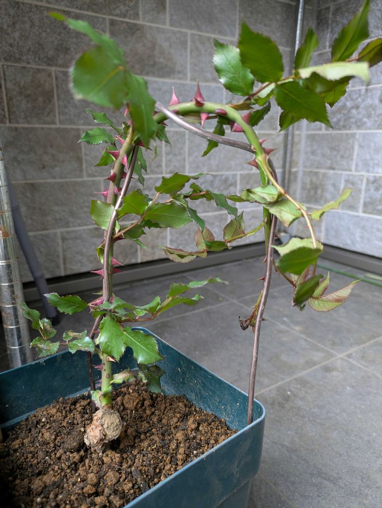 先日お迎えトロピカルシャーベット(ホントに美味しそうな名前😚舌はパッションフルーツの味😋)新苗を折り曲げ剪定モドキでアルミワイヤー巻いて曲げました。光合成する葉を沢山残しながら新枝を出させる技。切り花生産ではもっと根本からグイッと棒で押さえ込んでやります。