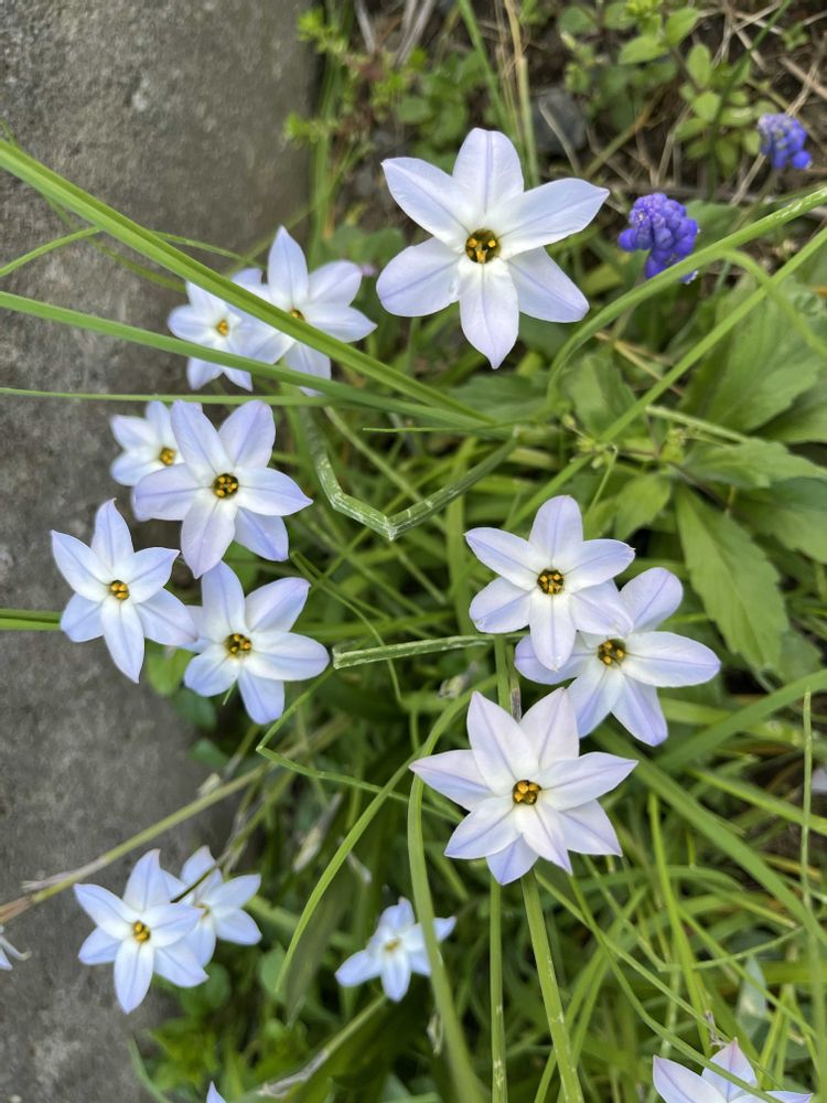 我が家の庭にもハナニラが咲いているのですが、所々に1輪ずつで、まとまって咲いてくれません😅