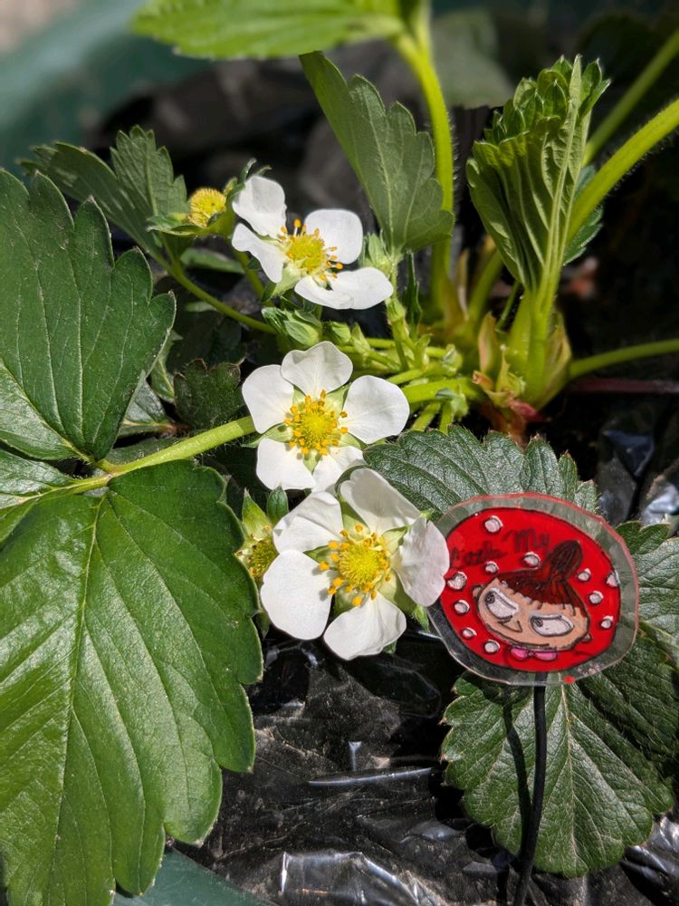 毎年、宝交早生を育ててるけど、こんなに大きいお花だったっけ⁉️🤔
