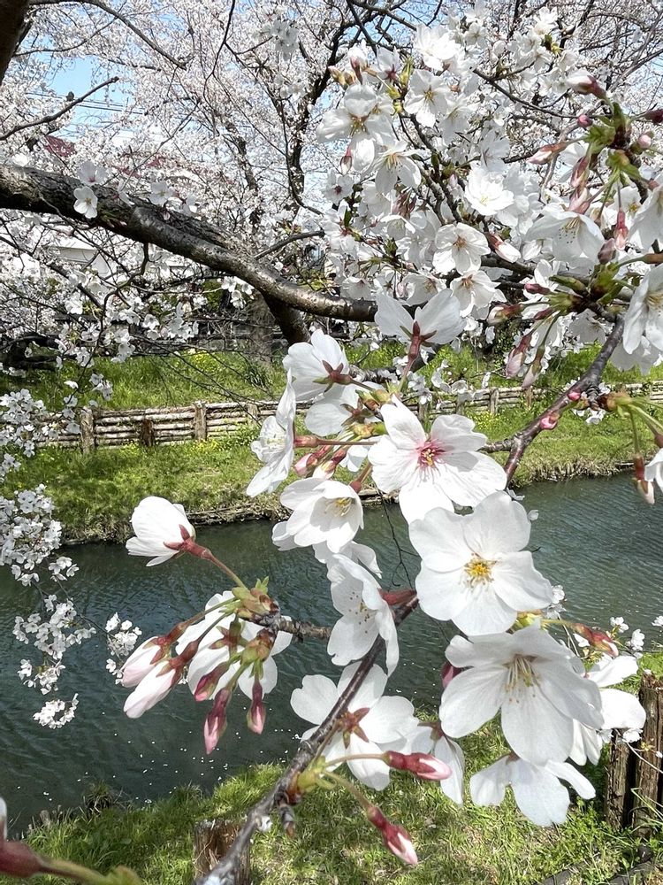 氷川神社の裏手、川沿いの桜並木が満開🌸