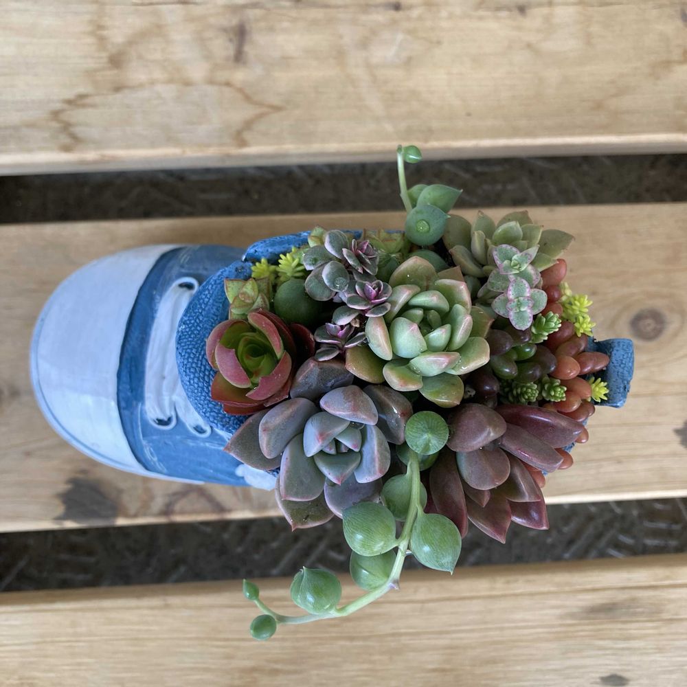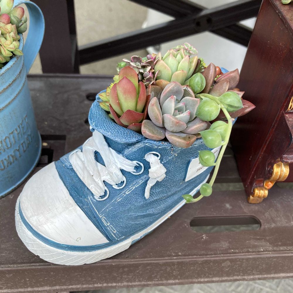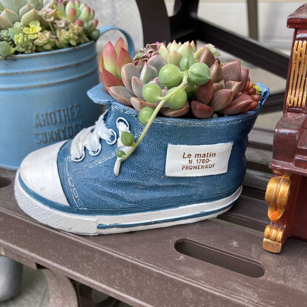 土も買うついでにポチッとしてしまったスニーカーの形の植木鉢。