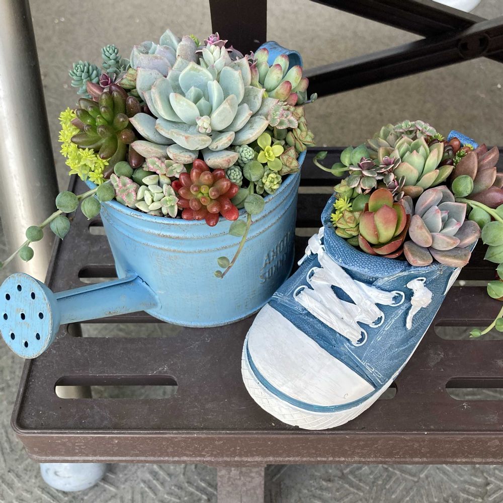 多肉植物の寄せ植えワークショップに参加したら、多肉ちゃんにハマってしまいました。 最近育て始めたばかりの初心者🔰です。2024.2〜 ハンドメイドも大好きで、元々デコパージュ(ペーパーナプキンを使って様々な物に貼り付けて加工する)を教えたりもしていました。