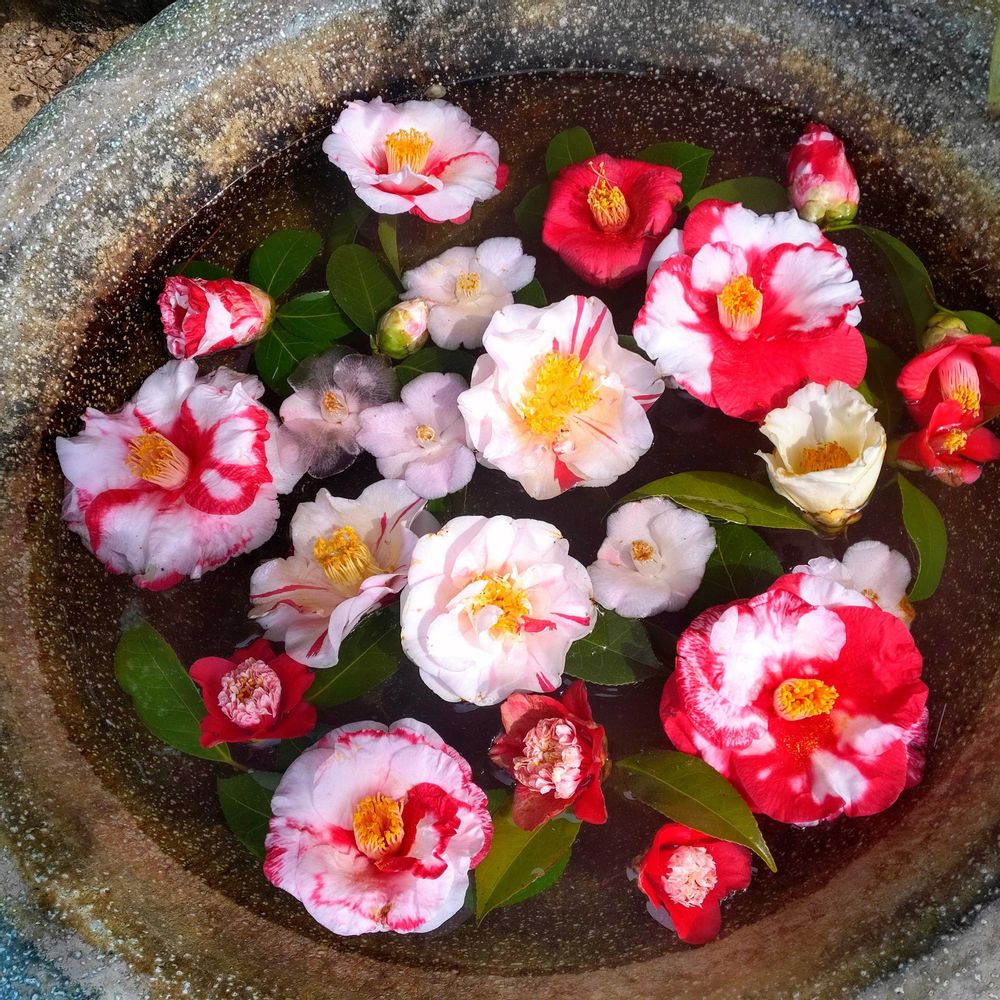 生徒さんが来られ、花手水を飾られたそうです。💞美しい。