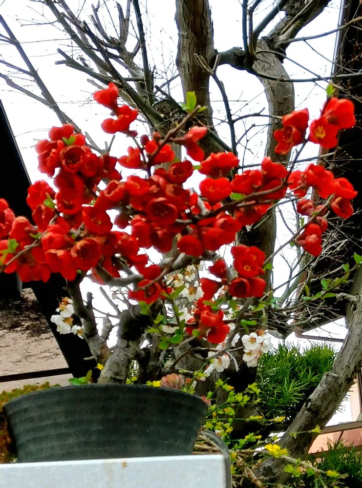 👍木瓜 我が家もヤット咲きだして 黄色と沈丁花のコラボになりました