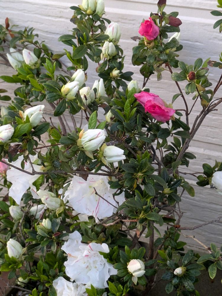 ツツジ、アザレア、仙台枝垂れ桜が咲き始めました。🥰🥳❤️❤️❤️