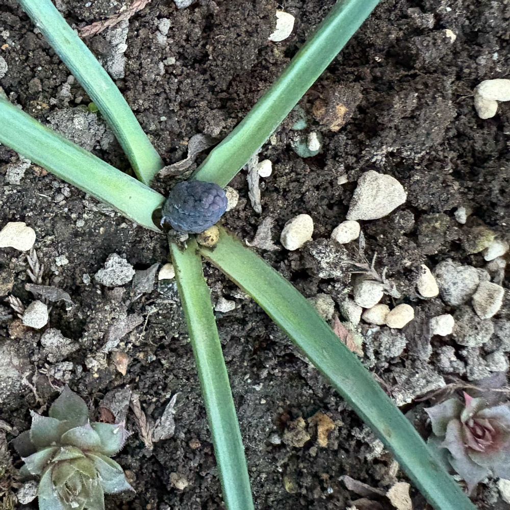 センペルビウムの鉢にタネが飛んで増えたのかムスカリが。