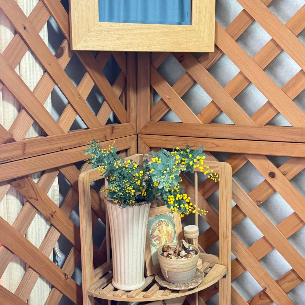 インテリア仏壇「鏡壇ミラリエ」「鏡壇ミロワ」に今日(4/9)の誕生花の「アカシア(ミモザ)」 を飾ってみました。