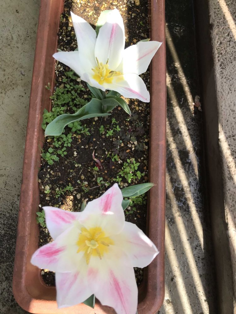 あまりの暖かさにチューリップが開ききってしまいました。ほのかなピンクがかわいいです。💕💕