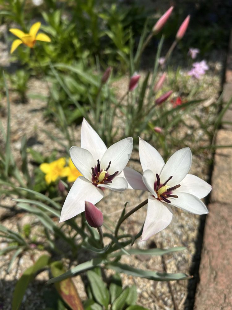 新たに2種の原種チューリップ開花、ピンクと白の八重のチューリップ可愛すぎる!
