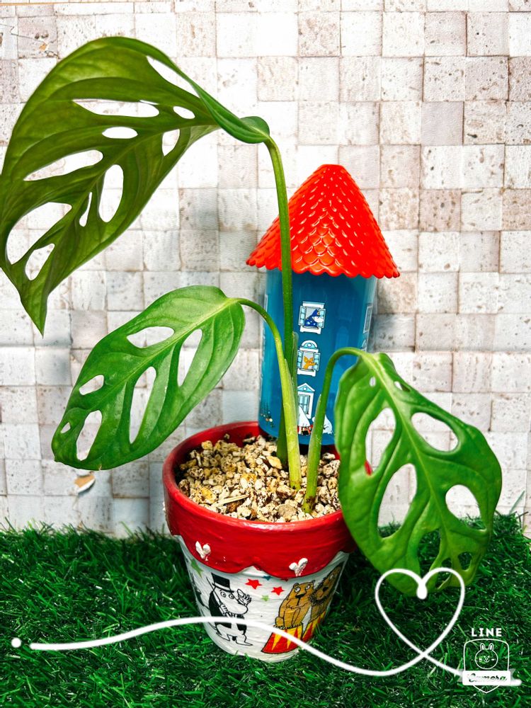 可愛いリメ鉢に、このまま育ったらちょっと大きくないかい?😅なモンステラ