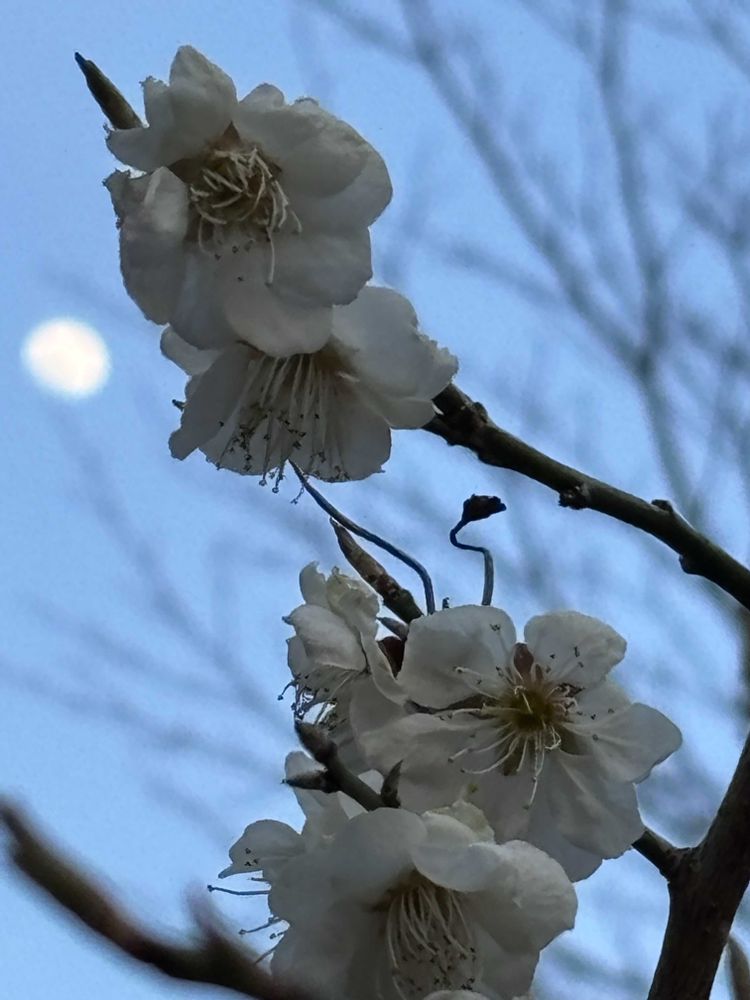 ③お隣の梅の木と、お月様🌕 お隣さんに了解をいただき、庭へ😊