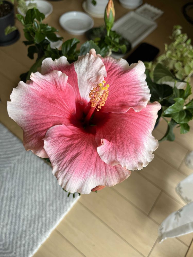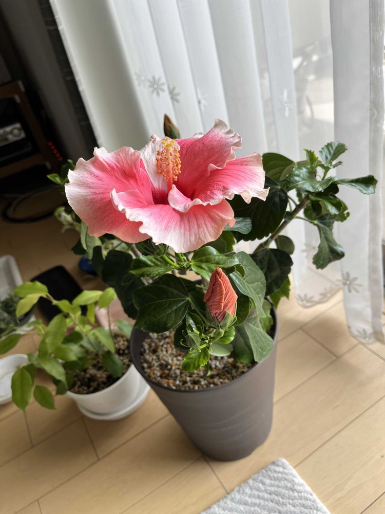 さんこんばんは🌉ハイビスカス🌺ピンクかわいいですよね😆💕今年一鉢増やしたいですが、きっと反対される😖一つあればいいっ‼️って😖そろそろホームセンターや園芸店で出回り始まる頃かなぁ🤔見たら絶対欲しくなる😨今年は球根植え付けを色々やって見たいなぁ😁🎶蘭の花まだ反応なし🌱🤔今週はダリアを挑戦です😆🙌