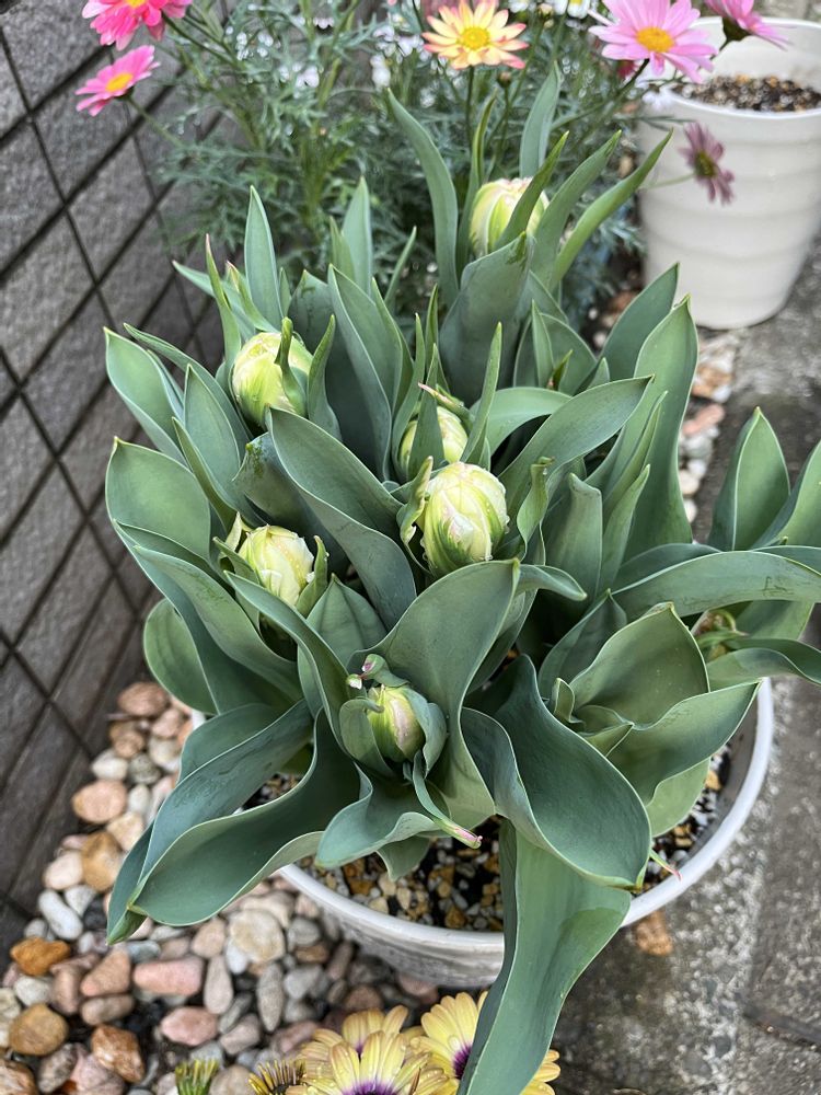 チューリップ🍨も成長過程見れて👀嬉しいよ👍まだ咲いてないけどこの時点でもかわいすぎるわ〜💕💕