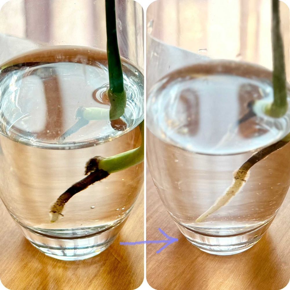 今年、母が気根がある茎を水挿しで発根させてみたそうで
