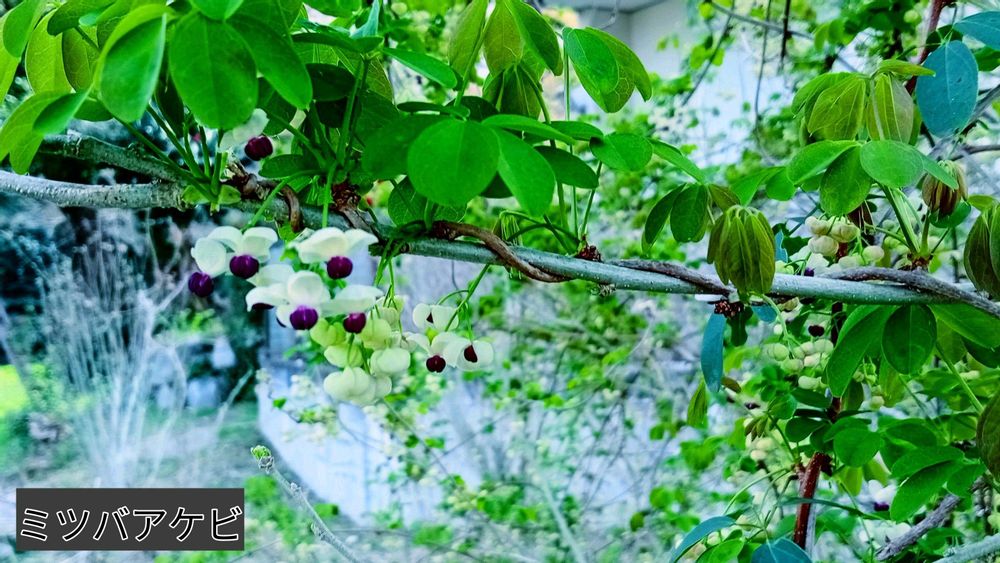散歩道(京都丹波亀岡)のアケビの花が、咲きだしました。