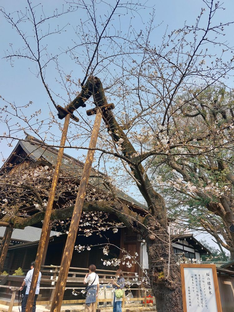 武道館での式典のあと、校舎も来ていいよと子供に言われて、行ってしまうヒロシ。そして寄り道するヒロシ(笑)。靖国神社行ってきました。🌸桜の標本木!この日は🌸開花宣言の日。ホントにこの木だけ咲いてるの。不思議よねー