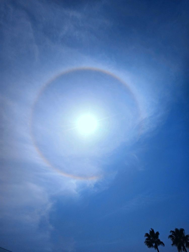 公園の活動終わり、見上げた空にはハロ🌈。太陽☀の周りにくっきり光の輪(日暈)。天気はゆっくり下り坂になるようです。