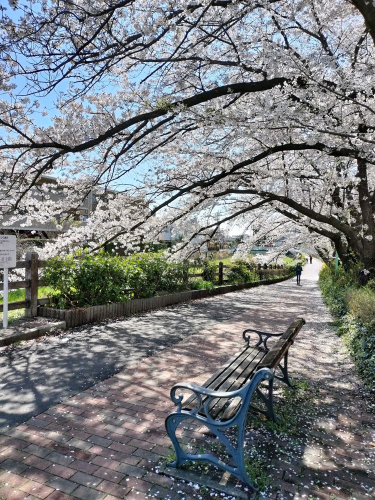 滝山こまち様。 1枚目の写真は、桜の木のアーチの下にベンチがありとても素敵な風景ですね。