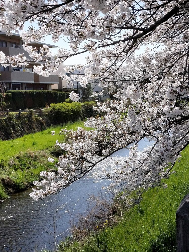 ソメイヨシノは、きょうの風で川に浮いてしまいそうです🌸